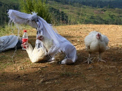 I don’t think these chickens were having a very good day. They were being carted home from the market and I suspect their days are numbered (Kumdi Ku).