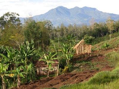 One nestled among the banana trees and another being built (off the road into Kigibah Estates).