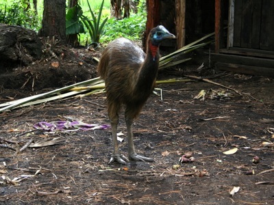 We visited Dos’ in-laws and they had a tame young cassowary bird wandering around. They start to get mean as they mature and they are usually caged before they become dangerous.